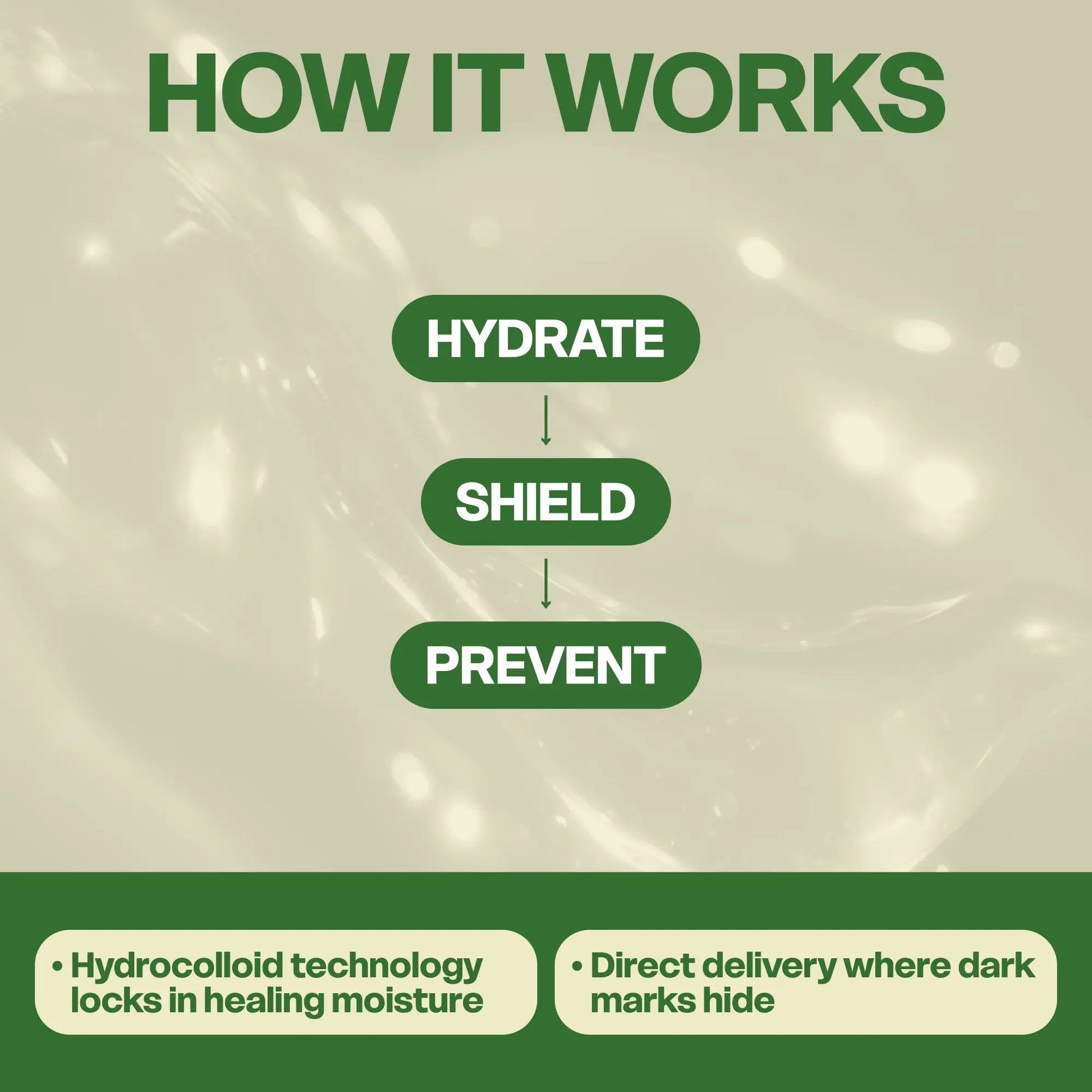 Hydrogel patch technology delivers moisture and calming ingredients right where irritation begins.